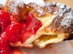 ドイツ風パンケーキとは言いますが、パンケーキと言って想像するものとは結構違って、周りはサクサク、中はしっとり・もちもちした感じ。真ん中のブルーベリーがのってる部分は生地が薄く、クレープのような感じです。